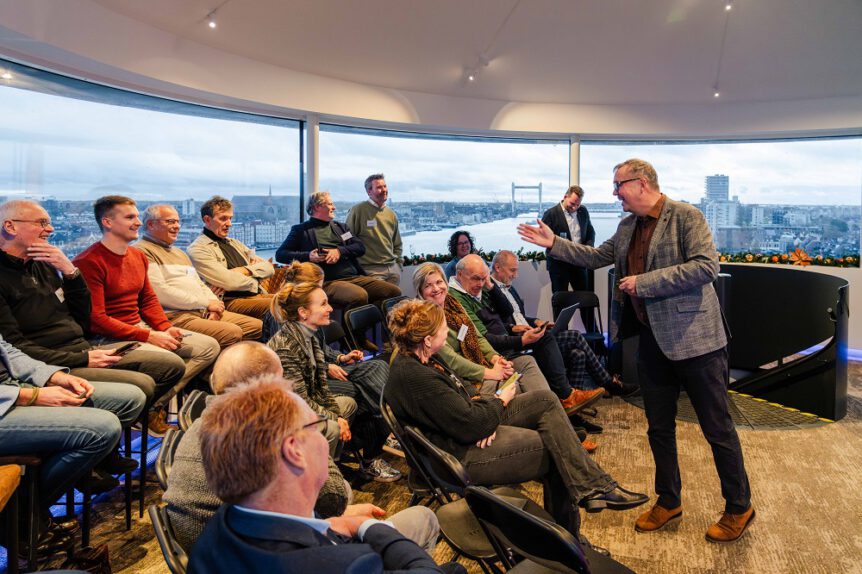 Afgelopen donderdag 20 november stonden de Zwijndrechtse en Heerjansdamse ondernemers volop in de schijnwerpers tijdens een succesvolle editie van de bijeenkomst rondom de Dag van de Ondernemer. Het Gemeente Zwijndrecht en het Ondernemersfonds Zwijndrecht organiseerden een inspirerende avond op de sfeervolle locatie, de Watertoren. De tijdelijke invulling van de Watertoren wordt verzorgd door de initiatiefnemers van Florizz aan het Water. Zij combineren horeca met maatschappelijke en sociaal-culturele initiatieven wat bijdraagt aan de gewenste invulling van deze bijzondere plek in Zwijndrecht. Een plek die, met zicht op verleden en toekomst, perfect paste bij het thema van waardering en vooruitkijken.